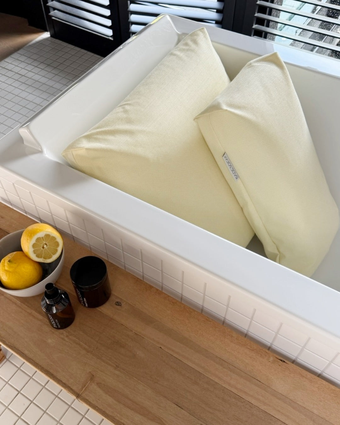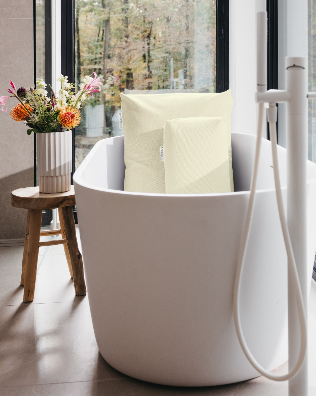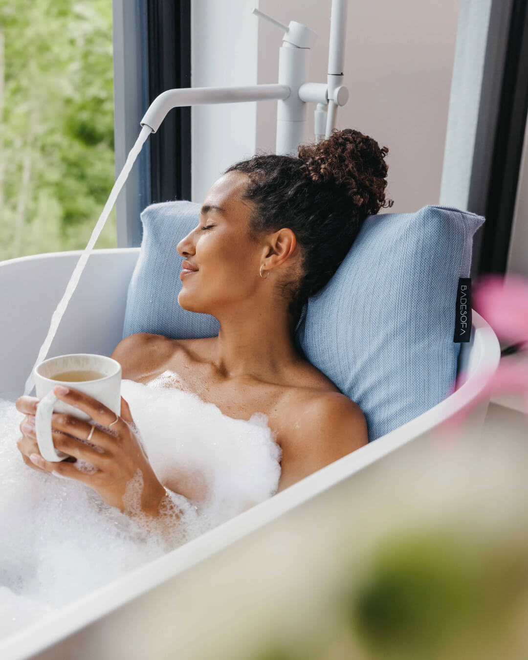 Mehr als nur ein Bad – das BADESOFA sorgt für pure Entspannung. Erognomische Unterstützung für Kopf, Nacken und Rücken trifft auf skandinavisches Design und hochwertige Materialien.