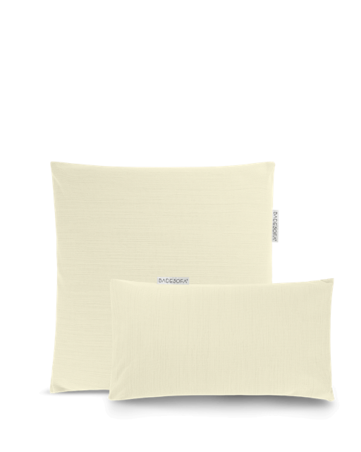 Unsere BADESOFA Kissenhüllen bestehen aus besonders widerstandsfähigem, hochwertigem Outdoorstoff. Sie sind zu 100 % wasserfest, UV-beständig und dank innovativem Finishing resistent gegen Schimmel und Stockflecken – für langanhaltenden Komfort und Pflegeleichtigkeit.